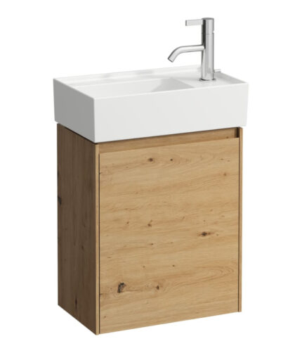 Laufen Kartell 1 Door Wall Hung Vanity Unit With Basin – 435mm Wide – 0 Tap Hole – Left Hinged – Wild Oak