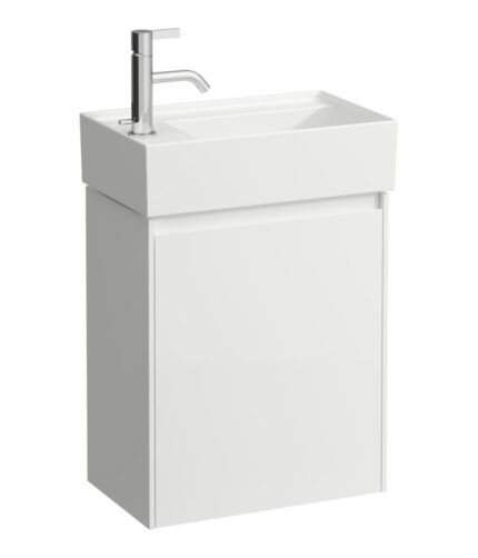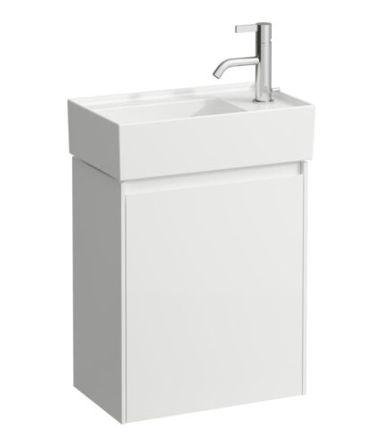 Laufen Kartell 1 Door Wall Hung Vanity Unit With Basin – 435mm Wide – Right Side Tap Hole – Left Hinged – Matt White