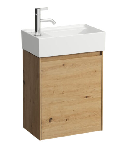 Laufen Kartell 1 Door Wall Hung Vanity Unit With Basin – 435mm Wide – Left Side Tap Hole – Right Hinged – Wild Oak