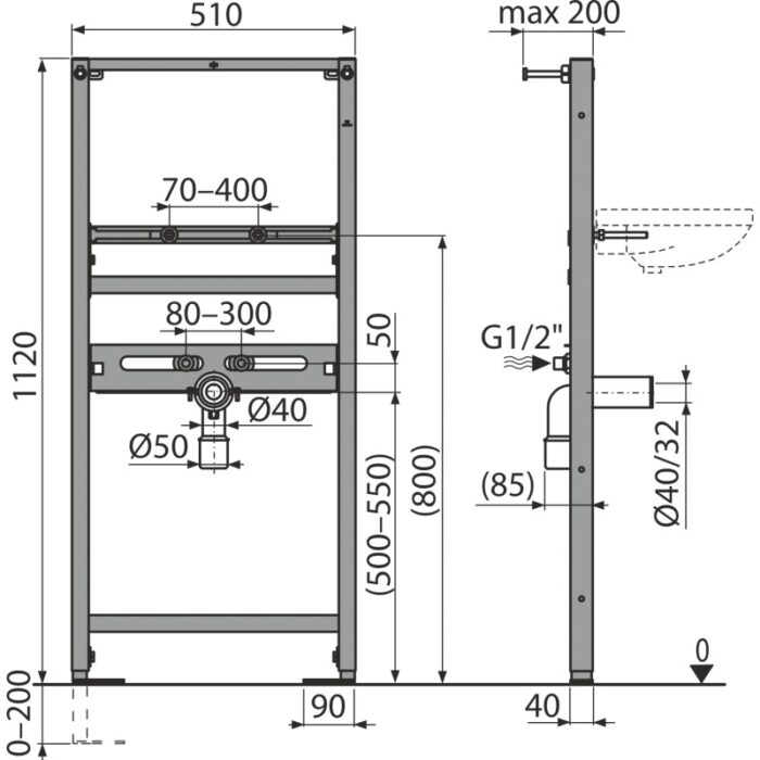 Alca Wall Mounting Frame For Washbasin – Black