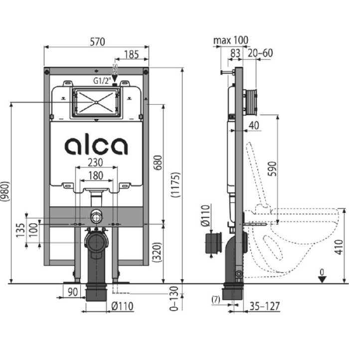 Alca WC Frame And Cistern Slim – 1175mm High – Black
