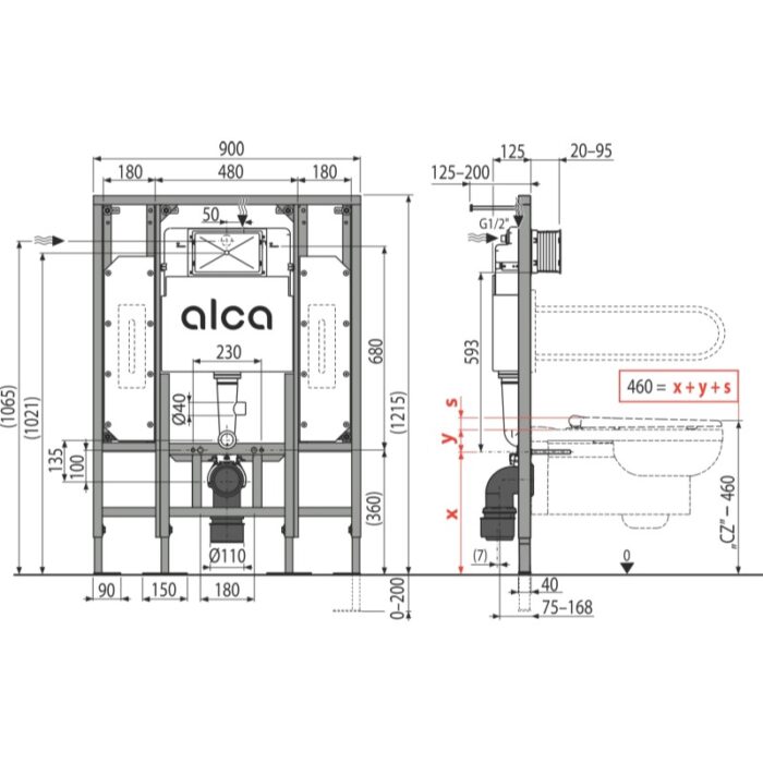 Alca WC Frame And Cistern,Reduced Mobility - 1215 High - Black