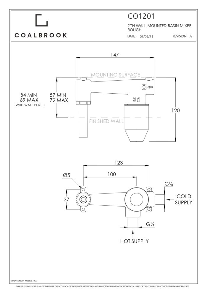 Coalbrook Rough Required For 2Th Wall Mounted Basin Mixer