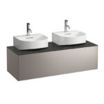 Laufen Sonar 1 Drawer Vanity Unit With Small Right And Left Side Double Basin – 1TH – 1175mm Wide – Titanium/Nero Marquina