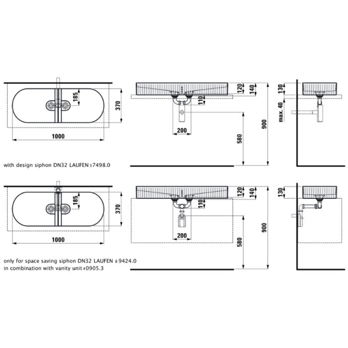 Laufen Sonar Double bowl Vanity Basin with surface structure – – 1000mm Wide – White