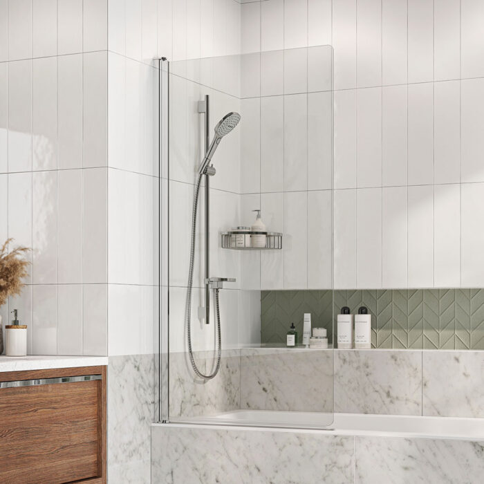 Roman Showering Embrace Hinged Shower Bath Screen – 6mm Glass – 1500mm X 820mm