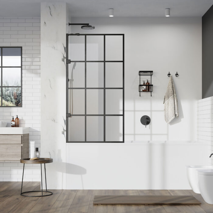 Roman Showering Liberty FiXed Bath Screen – 10mm Glass – 1500mm X 800mm – Matt Black Grid