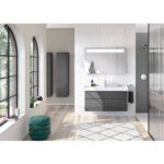 - Collaro bathroom furniture with a delicate design and an aluminium handle strip