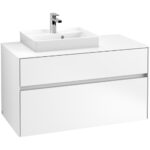 Villeroy & Boch Collaro 2 Drawer Wall Hung Vanity Unit With Led Lighting & LH Rectangular Basin – 1000mm Wide