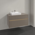 - Collaro bathroom furniture with a delicate design and an aluminium handle strip