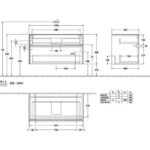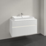 Villeroy & Boch Collaro 2 Drawer Wall Hung Vanity Unit With Led Lighting & Middle Rectangular 800mm Basin – 1000mm Wide