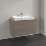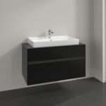 - Collaro bathroom furniture with a delicate design and an aluminium handle strip