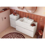- Collaro bathroom furniture with a delicate design and an aluminium handle strip