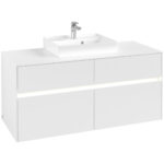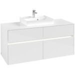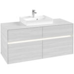 Villeroy & Boch Collaro 4 Drawer Wall Hung Vanity Unit With LED Light & Middle Basin – 1200mm Wide