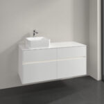 Villeroy & Boch Collaro 4 Drawer Wall Hung Vanity Unit With Led Lighting & LH Square 380mm Basin – 1200mm Wide