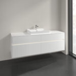 Villeroy & Boch Collaro 4 Drawer Wall Hung Vanity Unit With Led Lighting & Rectangular Middle Basin – 1600mm Wide