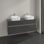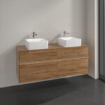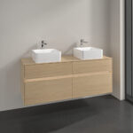 Villeroy & Boch Collaro 4 Drawer Wall Hung Vanity Unit With Led Lighting & Square Double Basin – 1400mm Wide