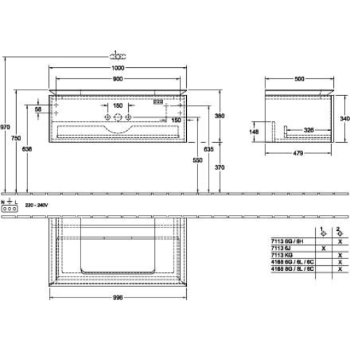 Villeroy & Boch Legato 1 Drawer Wall Hung Vanity Unit With 600mm Basin, Led Light – 1000mm Wide