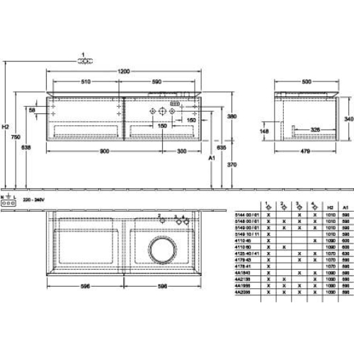 Villeroy & Boch Legato 2 Drawer Wall Hung Vanity Unit With 420mm RH Basin And Overflow, Led Light – 1200mm Wide