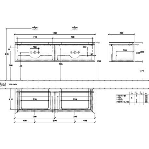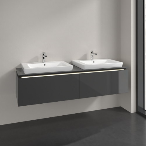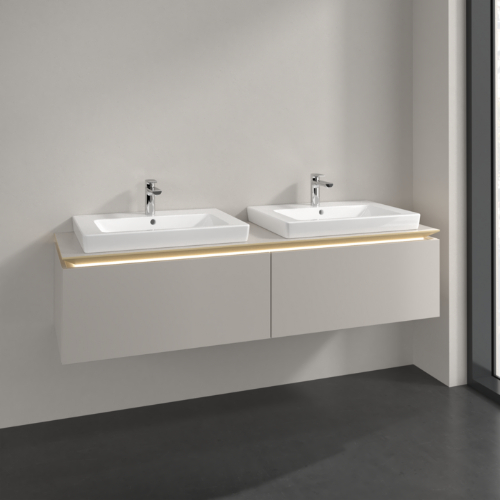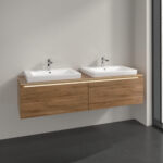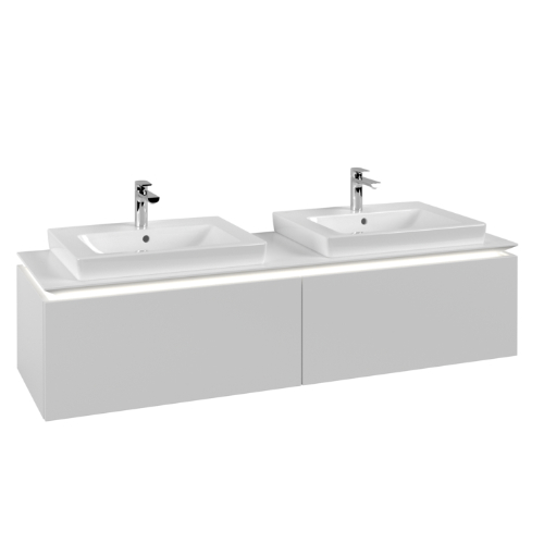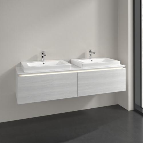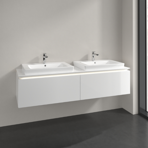 Villeroy & Boch Legato 2 Drawer Wall Hung Vanity Unit With 650mm Double Basin, Led Light – 1600mm Wide