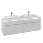 Villeroy & Boch Legato 2 Drawer Wall Hung Vanity Unit With 650mm Double Basin, Overflow, Led Light – 1650mm Wide