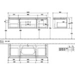 Villeroy & Boch Legato 3 Drawer Wall Hung Vanity Unit With 600mm Basin And Overflow, Led Light – 1400mm Wide