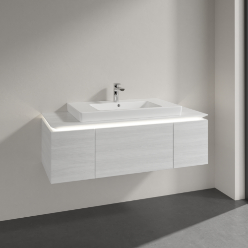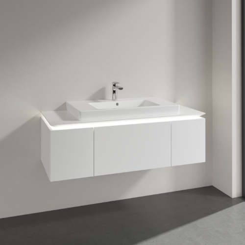 Villeroy & Boch Legato 3 Drawer Wall Hung Vanity Unit With 800mm Basin And Overflow, Led Light – 1200mm Wide