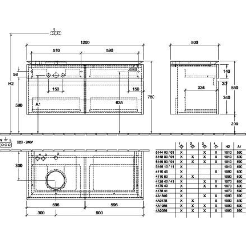 Villeroy & Boch Legato 4 Drawer Wall Hung Vanity Unit With LH Basin And Overflow, Led Light – 1200mm Wide