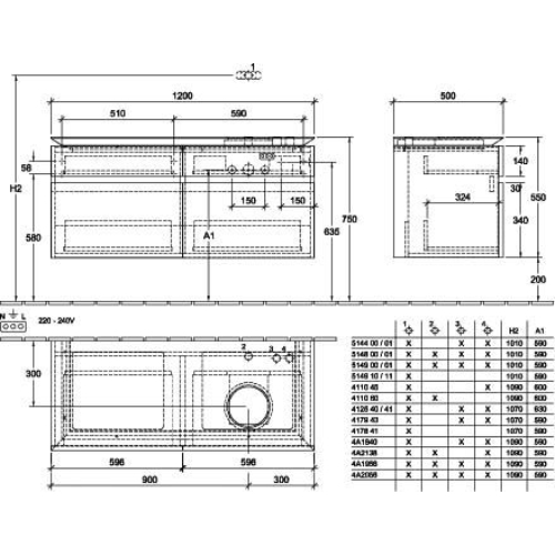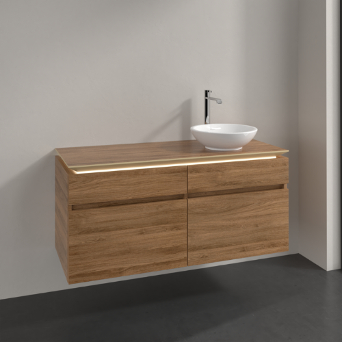Villeroy & Boch Legato 4 Drawer Wall Hung Vanity Unit With RH Basin And Without Overflow, Led Light – 1200mm Wide