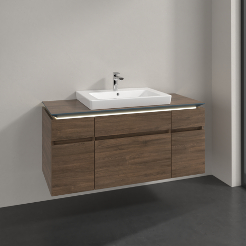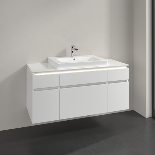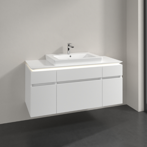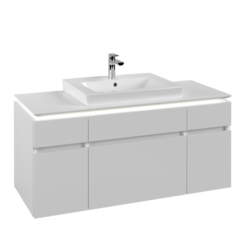 Villeroy & Boch Legato 5 Drawer Wall Hung Vanity Unit With 600mm Basin And Overflow, Led Light – 1200mm Wide