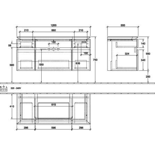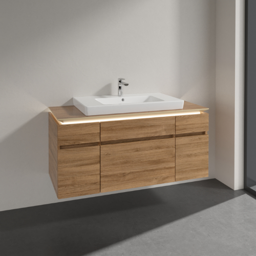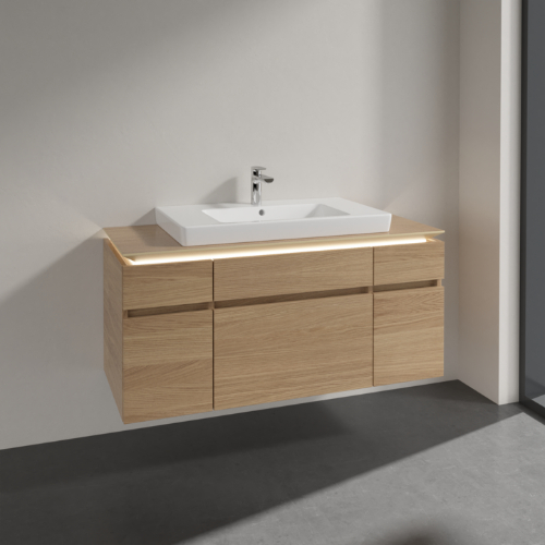 Villeroy & Boch Legato 5 Drawer Wall Hung Vanity Unit With 800mm Basin And Overflow, Led Light – 1200mm Wide