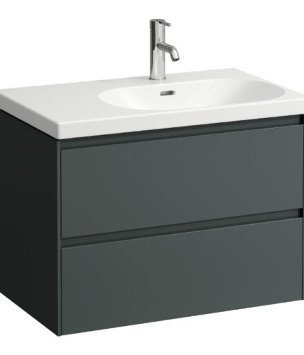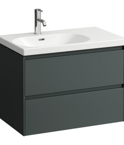 Laufen Lani 2 Drawer Wall Hung Vanity Unit With Left Side Basin And Without Overflow – 750mm Wide – 3 Tap Hole – Traffic Grey