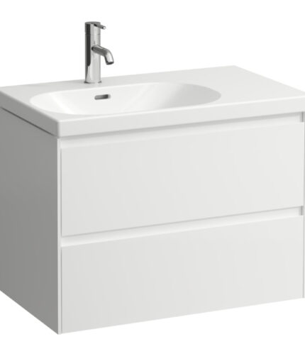 Laufen Lani 2 Drawer Wall Hung Vanity Unit With Left Side Basin And Without Overflow – 750mm Wide – 3 Tap Hole – Matt White