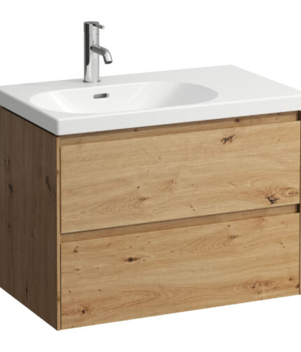 Laufen Lani 2 Drawer Wall Hung Vanity Unit With Right Side Basin – 750mm Wide – 0 Tap Hole – Wild Oak