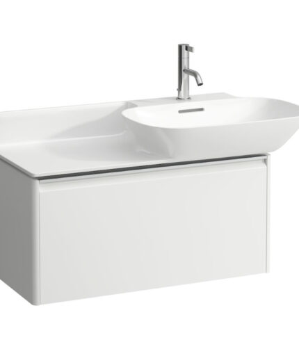 Laufen Ino Base 1 Drawer Vanity Unit With Countertop Basin Shelf Left – 770mm Wide – – Gloss White – Aluminium Handle Strip Without Overflow Hole