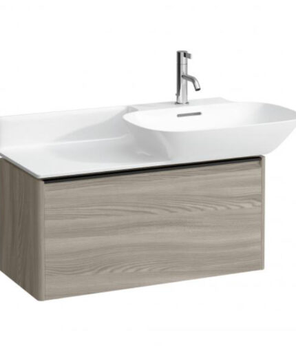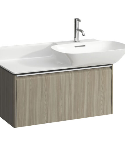 Laufen Ino Base 1 Drawer Vanity Unit With Countertop Basin Shelf Left – 770mm Wide – – Light Elm – Aluminium Handle Strip Without Overflow Hole