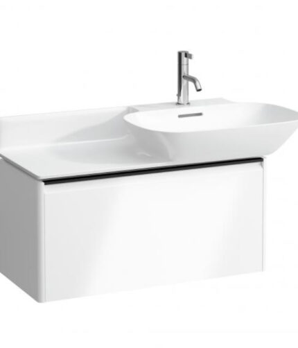 Laufen Ino Base 1 Drawer Vanity Unit With Countertop Basin Shelf Left – 770mm Wide – – Gloss White – Black Handle Strip Without Overflow Hole